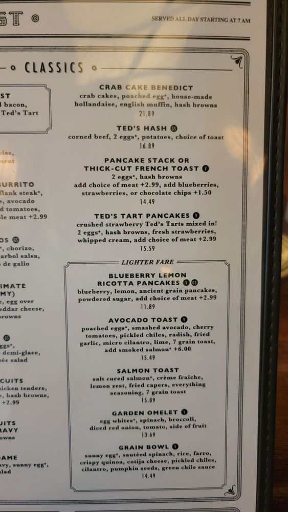 Ted's Bulletin VA Menu